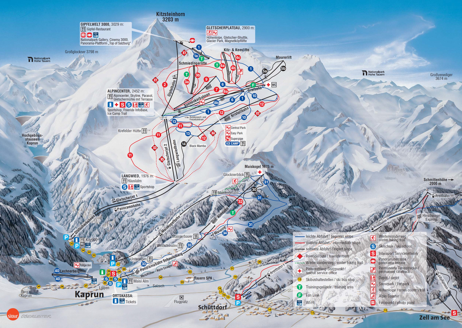 - Kaprun-Kitzsteinhorn-gleccser interaktív sípálya térképe itt.
