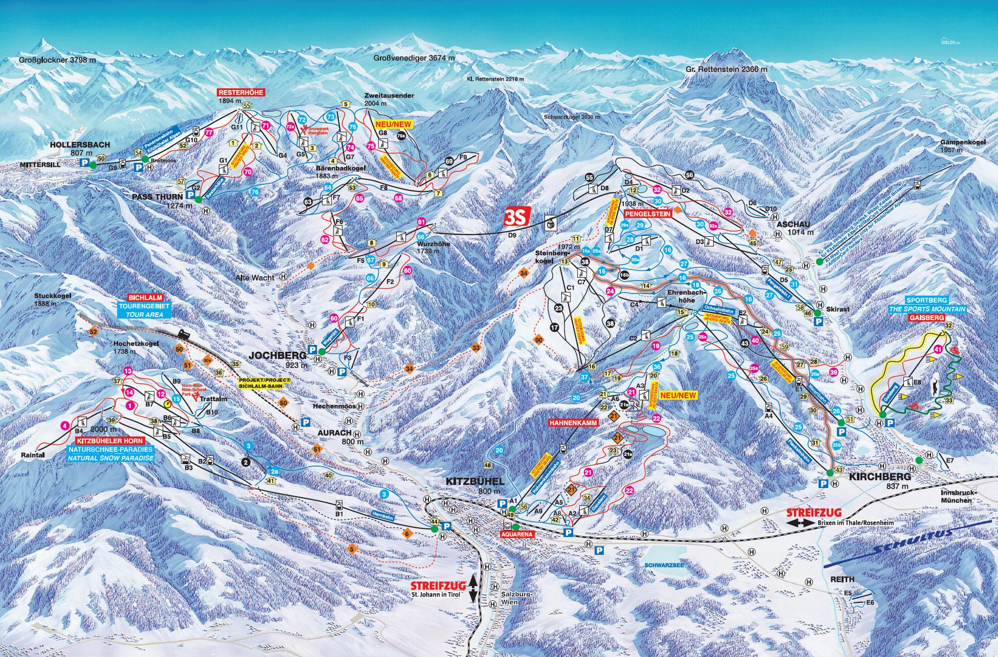 Kitzbühel-Kirchberg síelés, sítérkép: